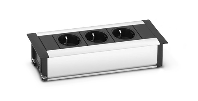 Office Power Dock is een opbouwmodule in geanodiseerd aluminium en voorzien van een 3 meter aansluitsnoer. Standaard inclusief bladklemmen. Beschikbaar in 3 varianten, namelijk 2x stroom, 3x stroom met 2x data CAT6, 2x stroom met 2x USB charger.