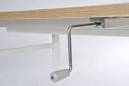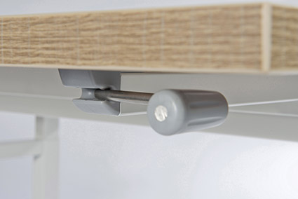 De Flex-1 is met een hand-slingermechaniek in hoogte verstelbaar van 68 – 114 CM. In de breedte is dit onderstel instelbaar van 110 – 170 CM. Het bureau heeft een dynamische belasting van 60kg. 1 is uit voorraad leverbaar in RAL 9006 alu en 9016 wit. Indien u kiest voor een blad met de afmeting 180 tot 200 CM, moet u een extra U profiel toevoegen (voorkomt doorbuigen blad).