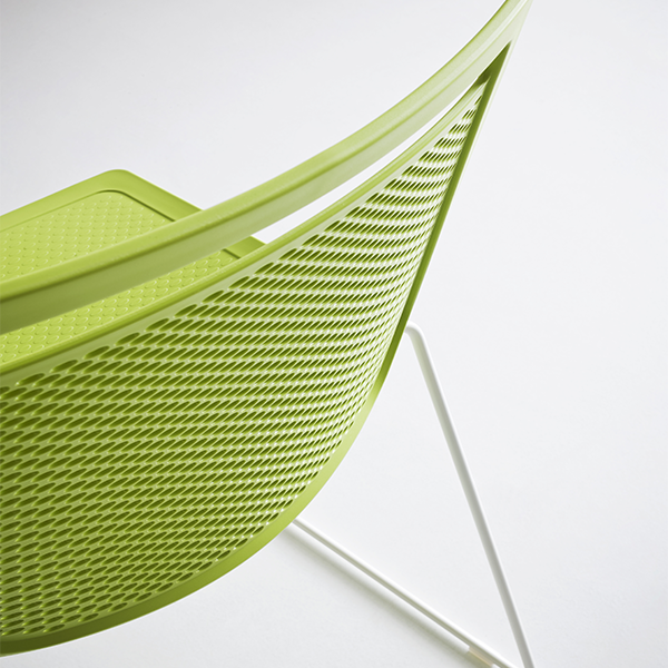 De stapelbare Akami vergaderstoel is strak vormgegeven met een geperforeerde rug en handige handgreep. Veel frame uitvoeringen zijn te combineren met de optionele gestoffeerde kuip.